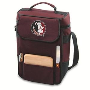 Product Description : Style: Florida State SeminolesColor:Burgundy, Decoration:Digital Print Florida State Duet Insulated Wine And Cheese Tote Insulated wine and cheese tote with 2 compartments for wine, made of 600D polyester canvas. The elegant and unique Duet wine and cheese tote is perfect for picnics, concerts, or travel. This tote has two compartments for wine bottles a storage section to carry the amenities included. The adjustable shoulder strap makes it easy to carry. Convenient and practical, the Duet is perfect for wine and cheese lovers. Components: 1 Corkscrew (waiter style stainless steel) 1 Cutting board (wood 6 x 6 in.) 1 Cheese knife (stainless steel w/wood handle) <font face=